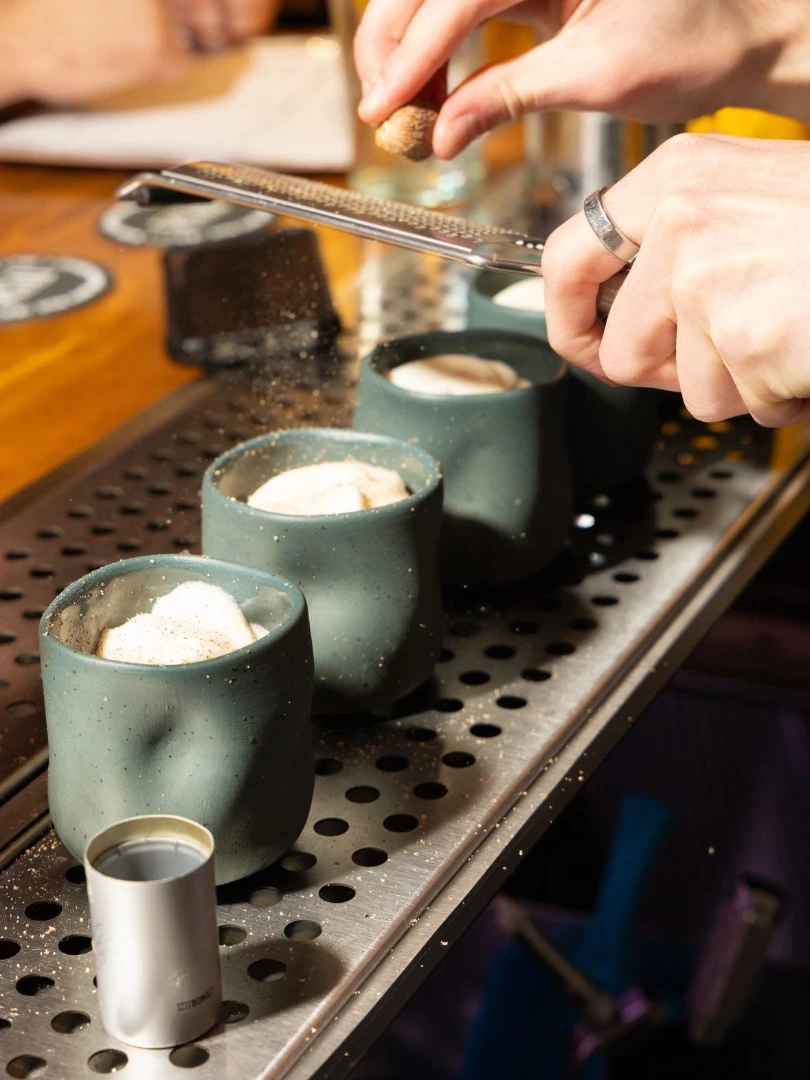Pierwszy — i na pewno nie ostatni — konkurs barmański w mojej karierze. Przygotowałem koktajl z kategorii ciepłego Flipa na bazie piwa Piast, syropu korzenno-karmelowego, żółtek oraz pianki śmietankowej na szkockiej whiskey Chivas Regal.